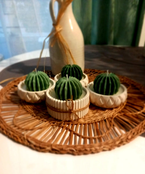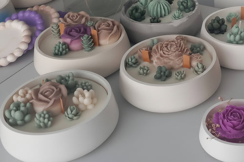 Son récipient en ciment blanc est fabriqué à la main et réutilisable.