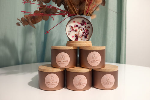 Bougie artisanale de 150gr décorée d'une délicate fleur péonie et décorée avec de fleurs sèches . Fabriquée à partir de 100 % de cire de soja, de parfums et colorants naturels, elle offre une combustion propre et une ambiance douce et élégante.